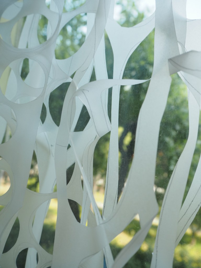 The skin reveals the void. By drawing a line, we recognize the space. With this method, we could recognize the space by weaving the lines in the 3 dimentional space.